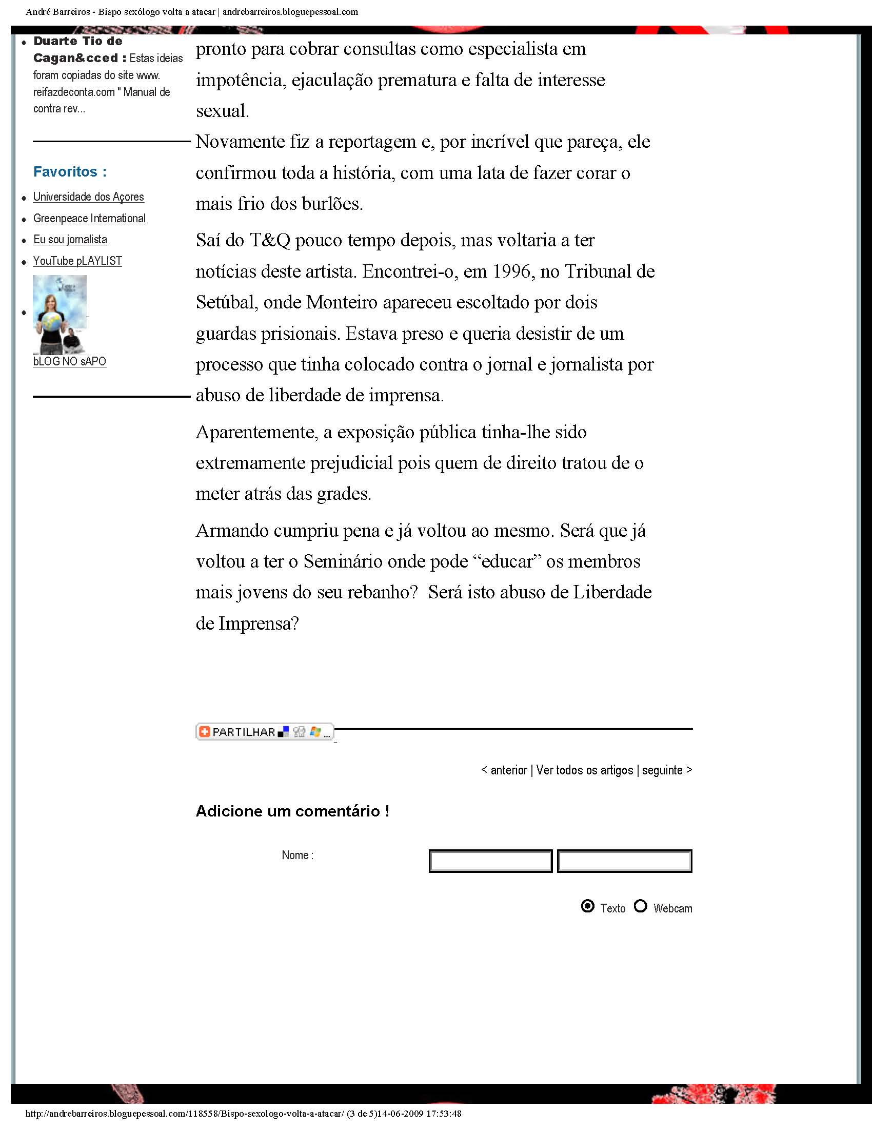 Mesmo assim, gostava de responder a algumas acusações do bloguista, no seu blog: