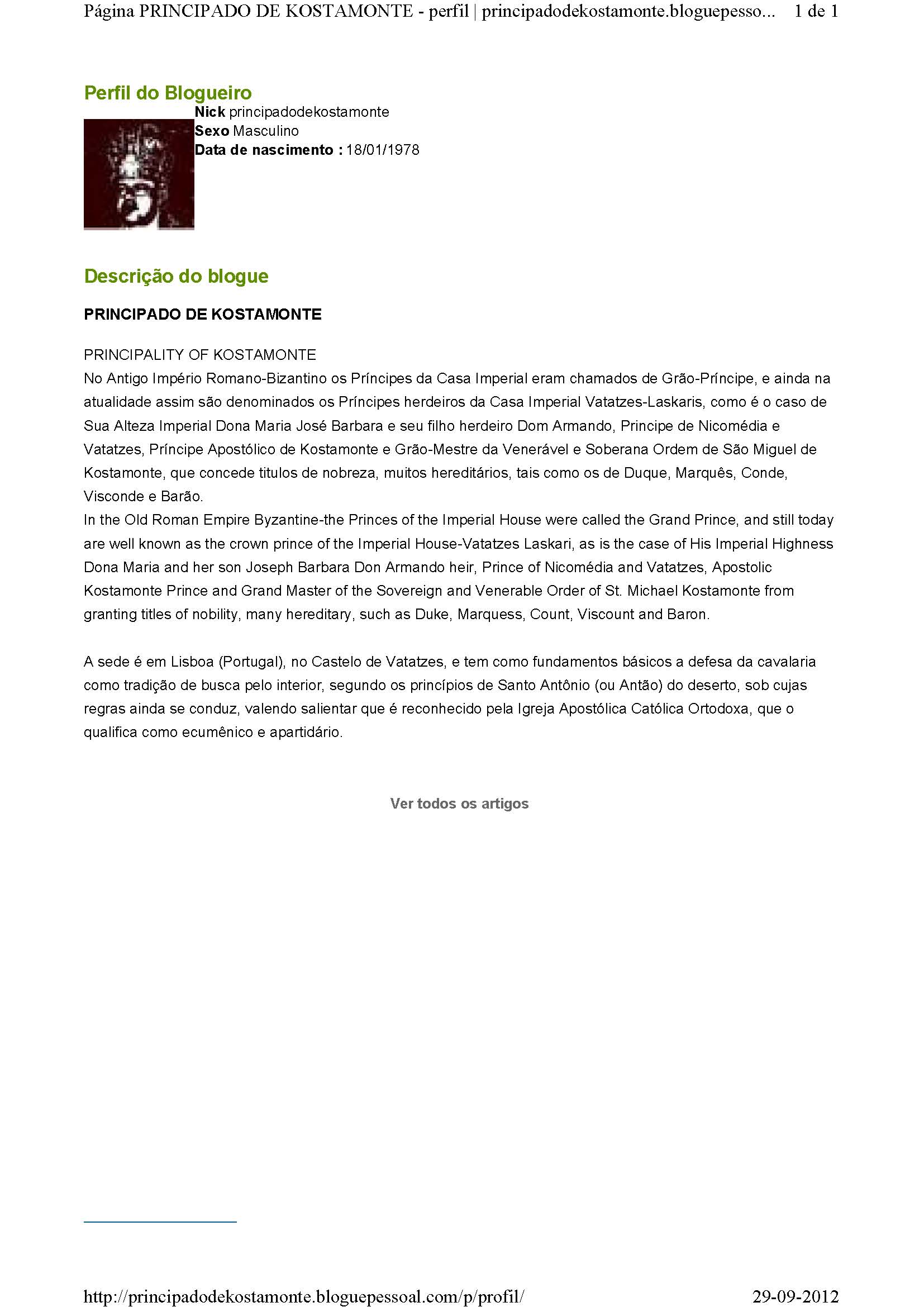 9) grão-mestre da venerável e soberana Ordem de São Miguel de Kostamonte;