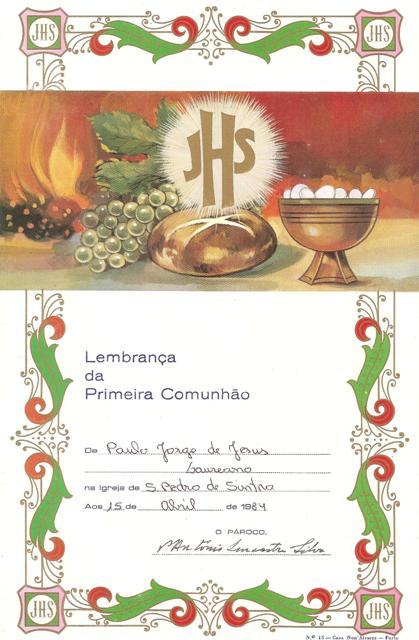 14 de Abril de 1984 - Recebe a Primeira Comunhão na Igreja Católica Apostólica Romana.