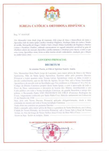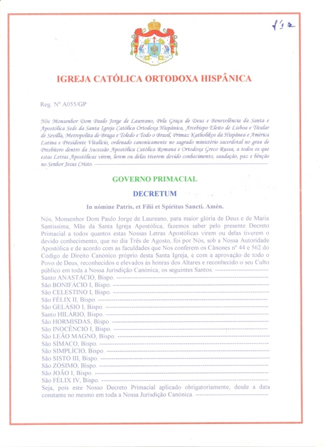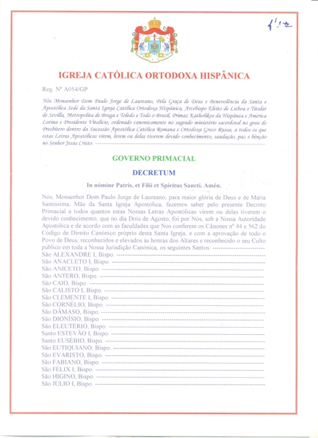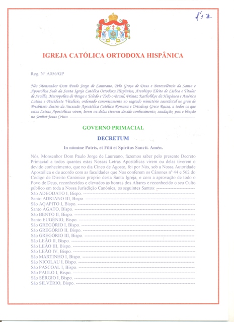 Elevação aos Altares de 20 Santos da Igreja Católica Ortodoxa Hispânica - A056/GP