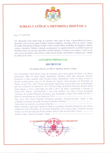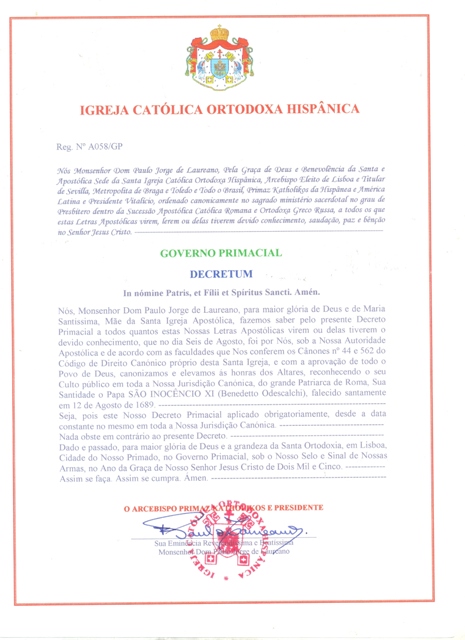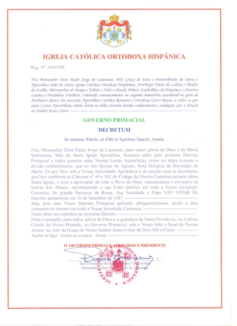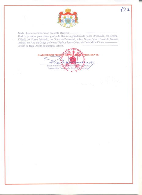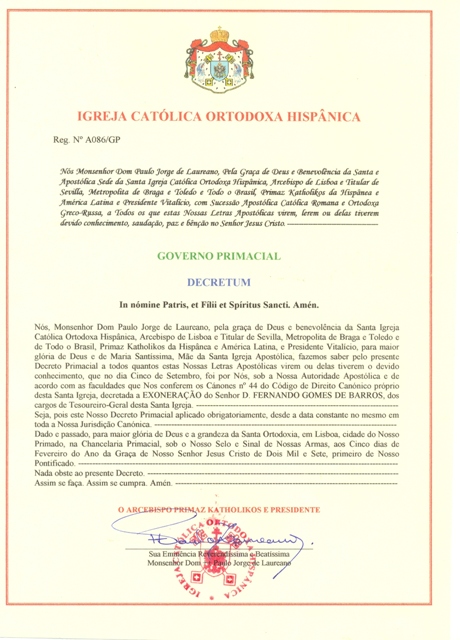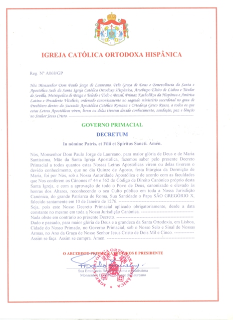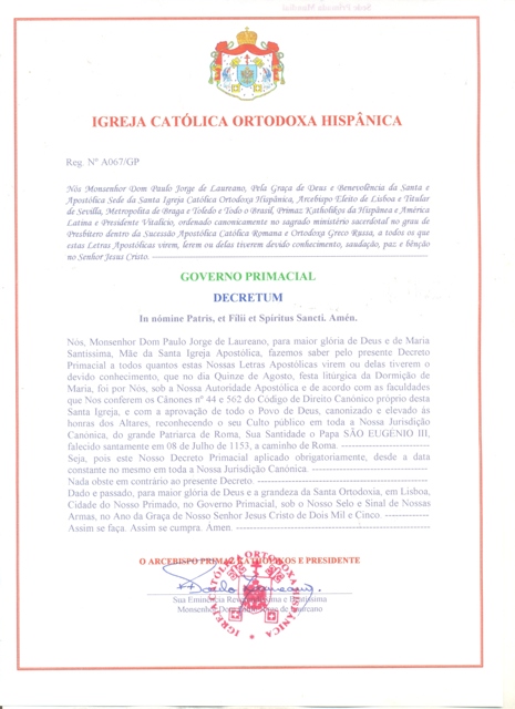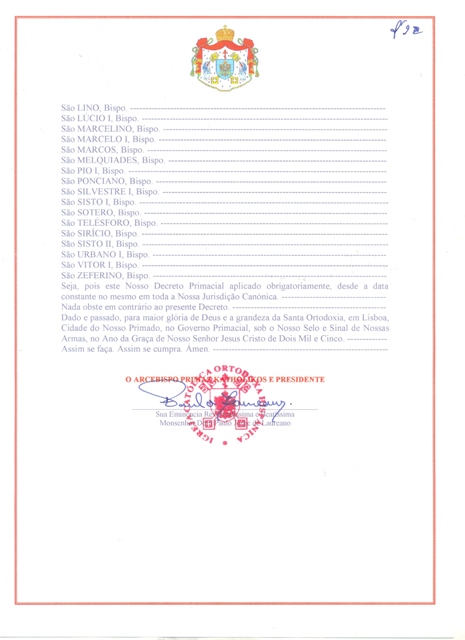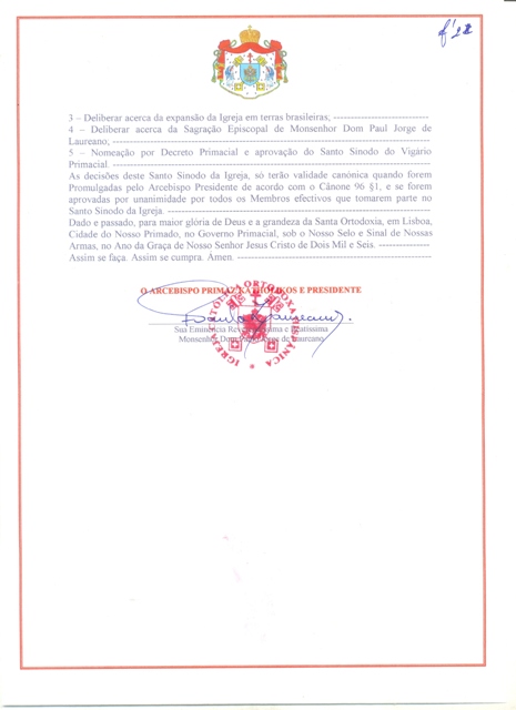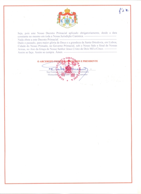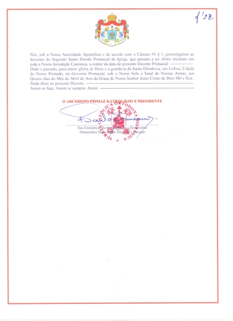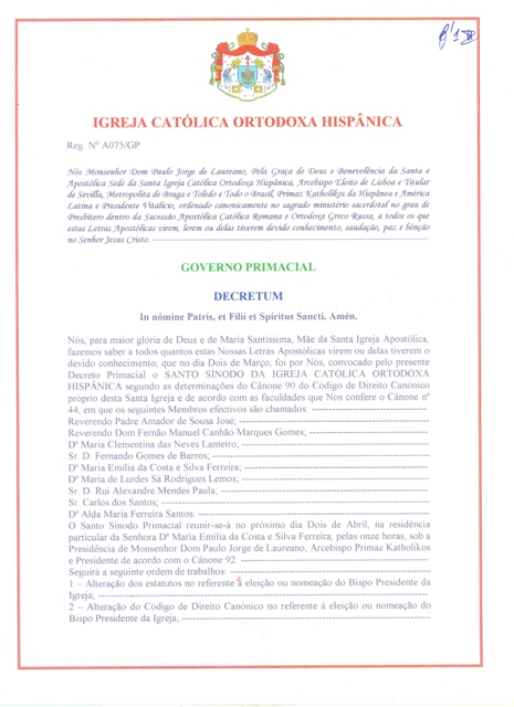 Convocação do II Santo Sínodo Primacial da Igreja – A075/GP