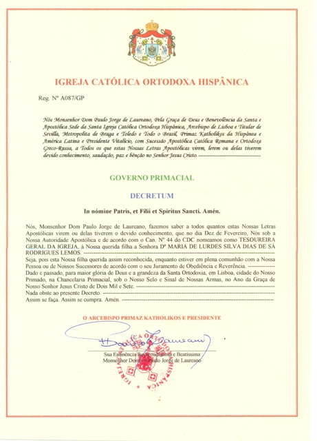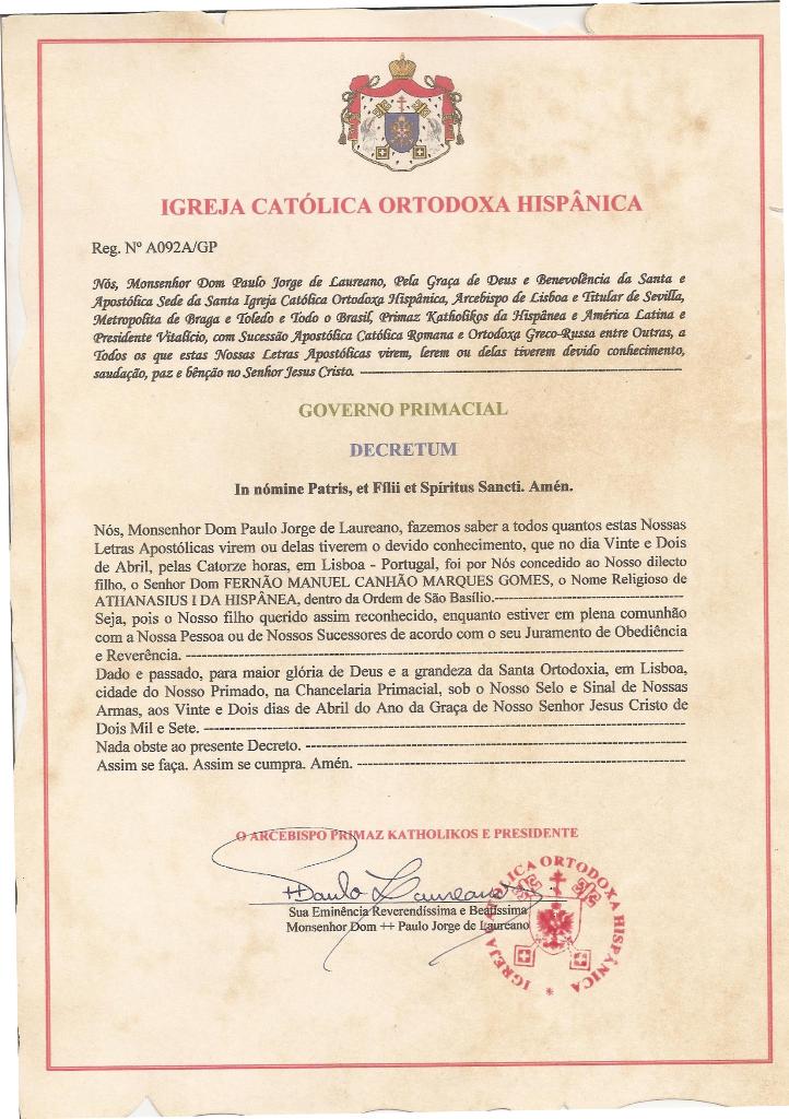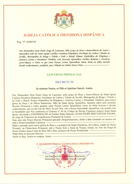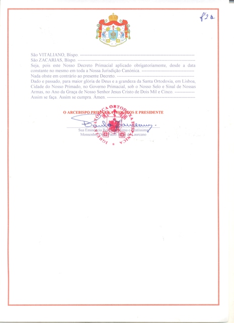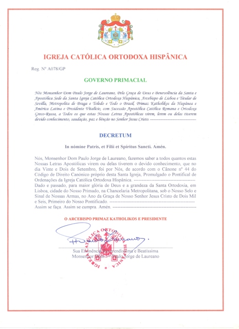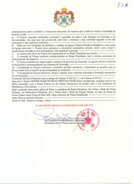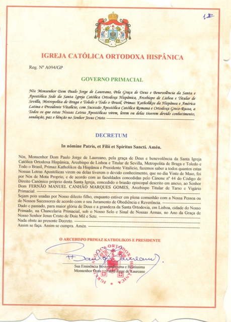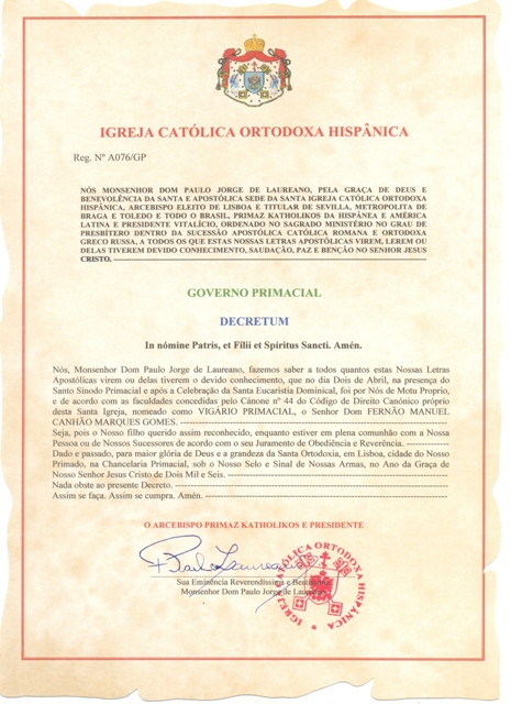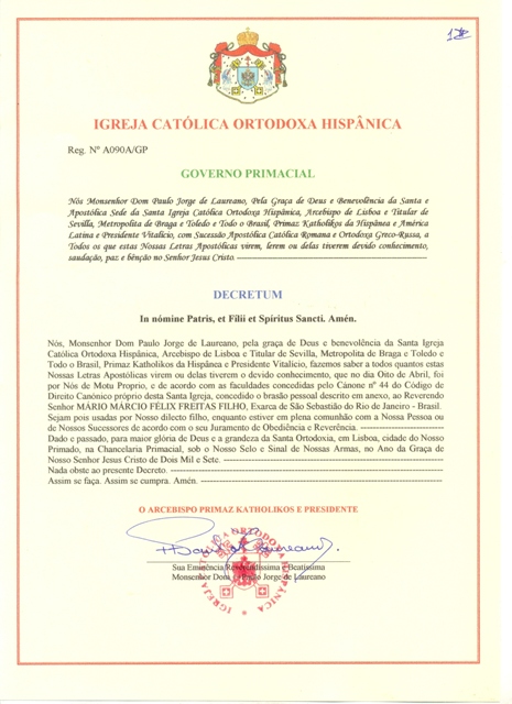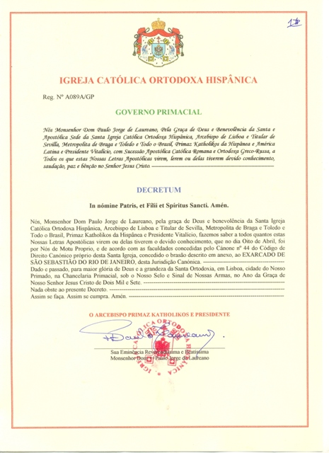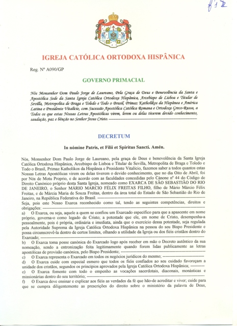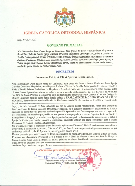 Nomeação do Exarca de São Sebastião do Rio de Janeiro – Brasil – A090/GP