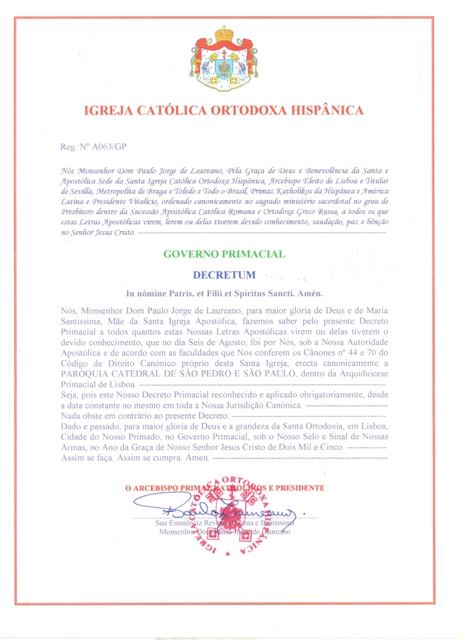 Erecção Canónica da Paróquia Catedral de São Pedro e São Paulo - A063/GP