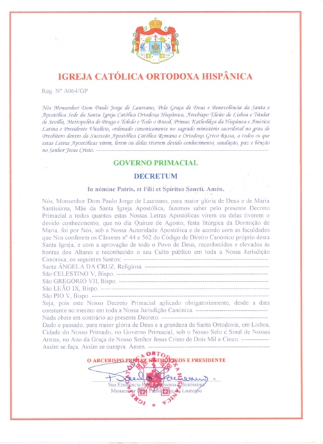 Elevação aos Altares de 15 Santos da Igreja Católica Ortodoxa Hispânica - A055/GP