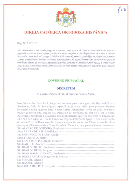 Elevação aos Altares de 13 Santos da Igreja Católica Ortodoxa Hispânica - A072/GP