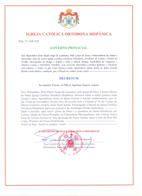 Promulgação do Missal para uso exclusivo do Arcebispo Primaz Katholikos – A081/GP