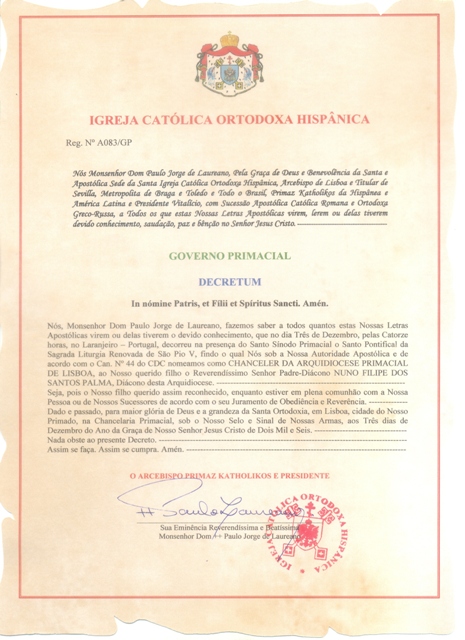 Nomeação como Chanceler da Arquidiocese Primacial de Lisboa do Reverendo Padre-Diácono Nuno Palma – A083/GP