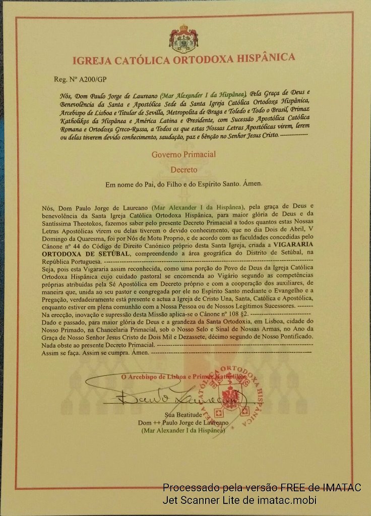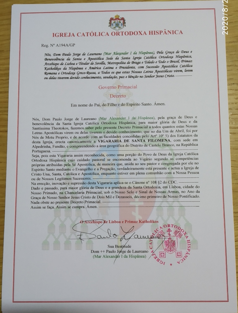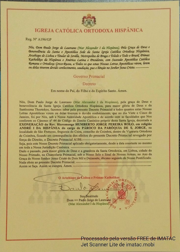 Exoneração do Hieromonge Humberto Rolo como Pároco de S. Jorge Mártir, Coimbra - A196/GP