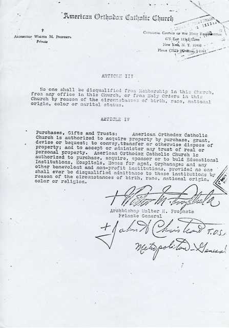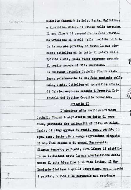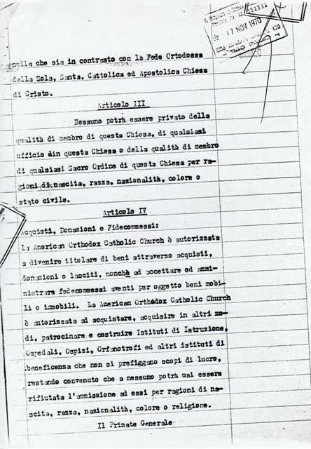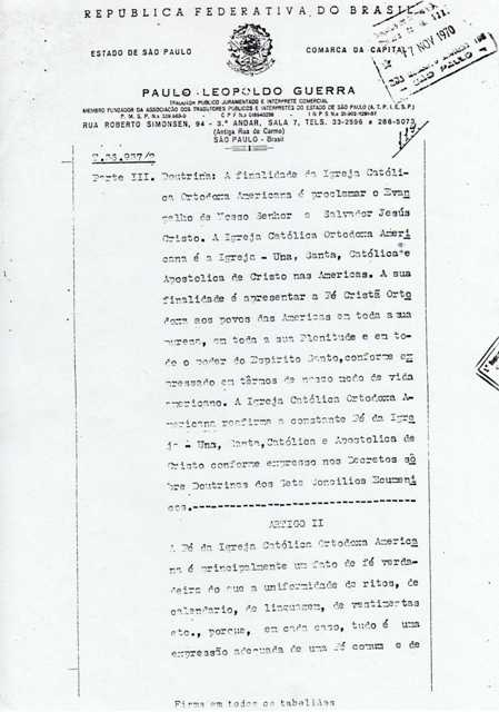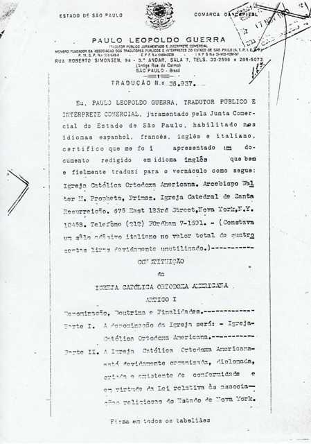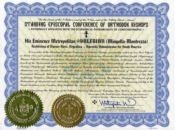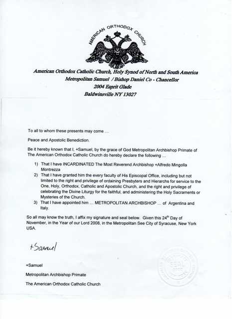 Bula de Incardinação no Santo Sínodo da The American Orthodox Catholic Church