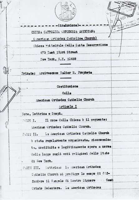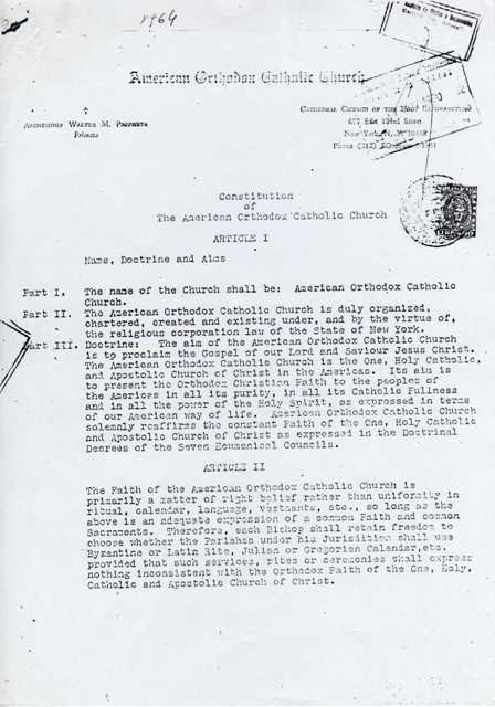 I - The American Orthodox Catholic Church (Igreja Católica Ortodoxa Americana)
