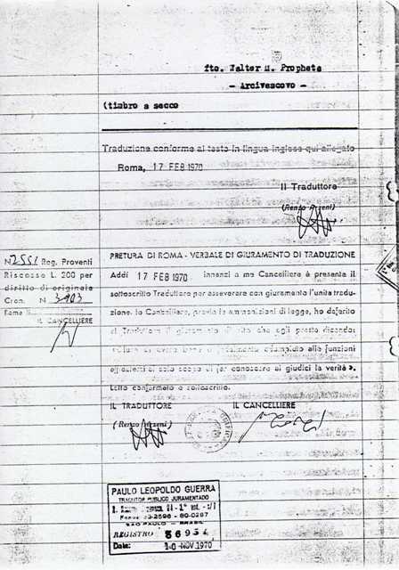 Bula de Incardinação na The American Orthodox Catholic Church, pelo Arcebispo e Exarca Dom Giuseppe Eusebio Santo Pace