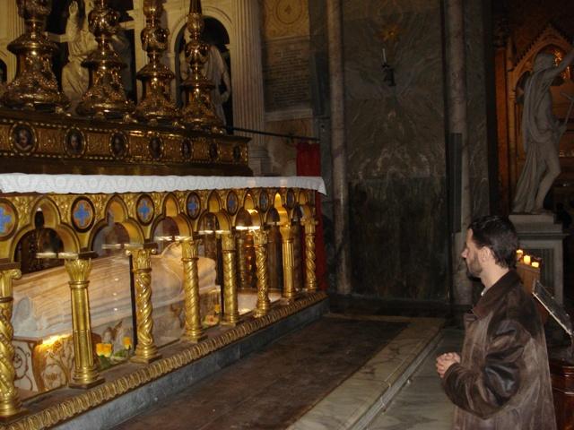 Junto ao suposto túmulo do Apostolo São Paulo, na Basilica de São Paulo Extra-Muros, em Roma (13-11-2008)