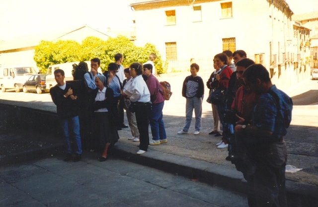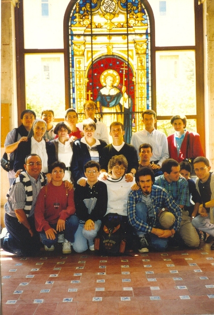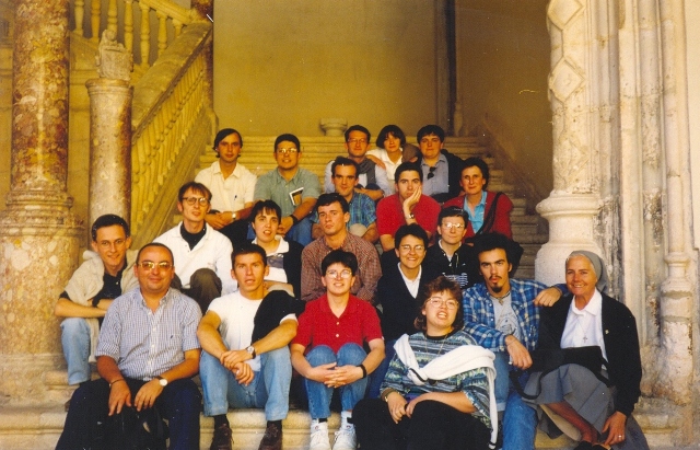 Os noviços e noviças, no Claustro da Abadia de Santo Domingo de Silos com alguns dos Beneditinos (Burgos - Espanha)