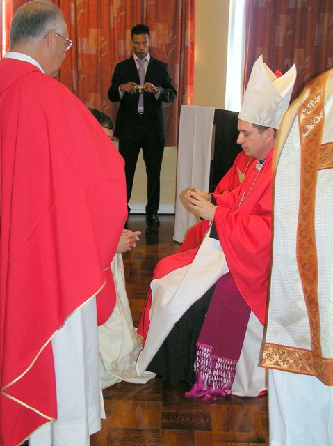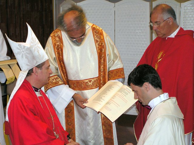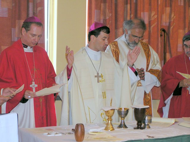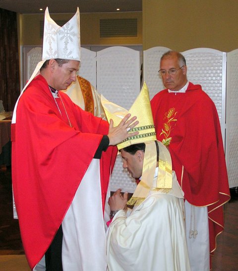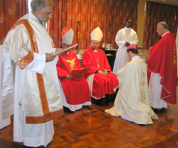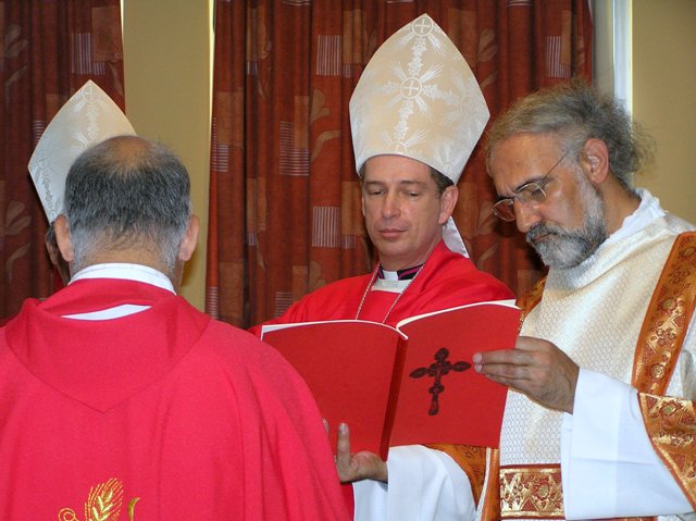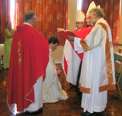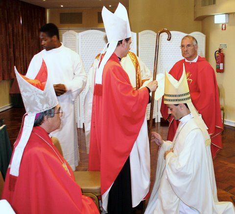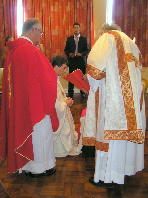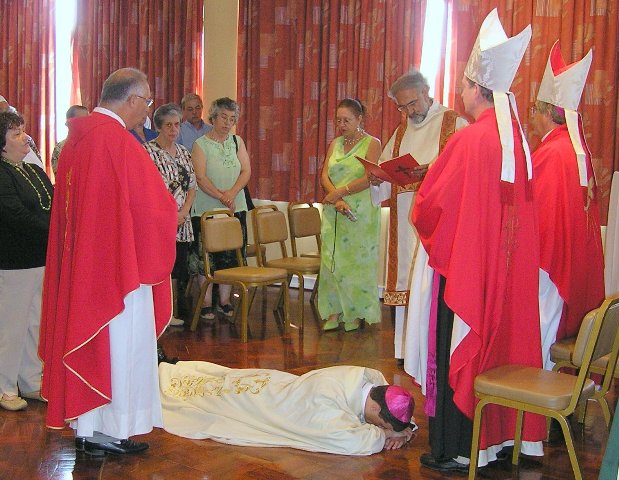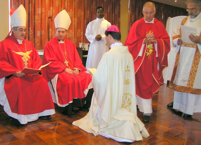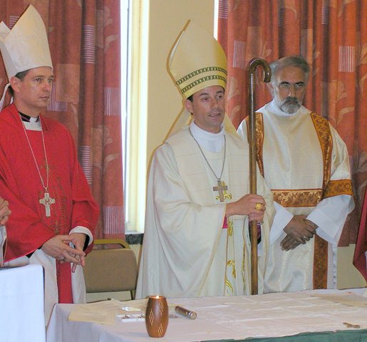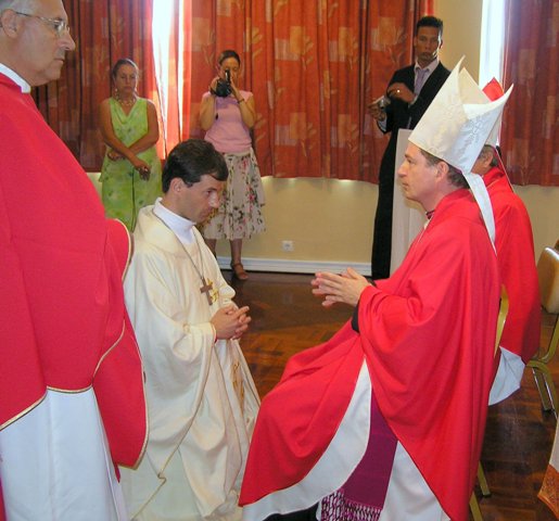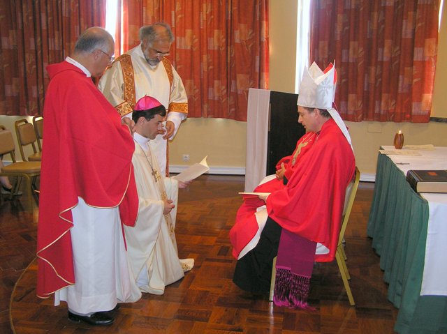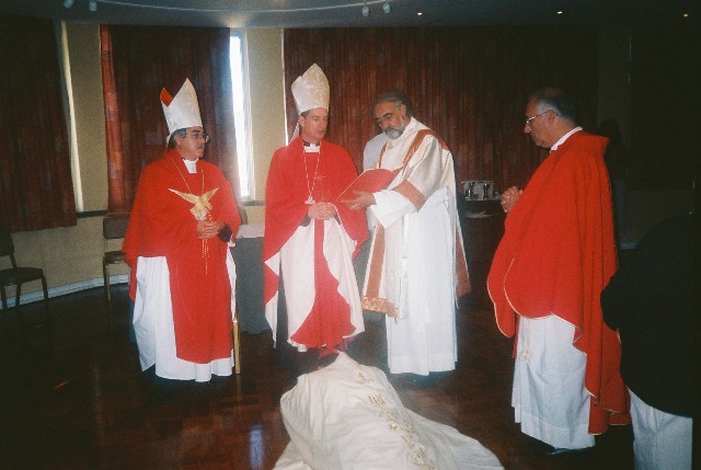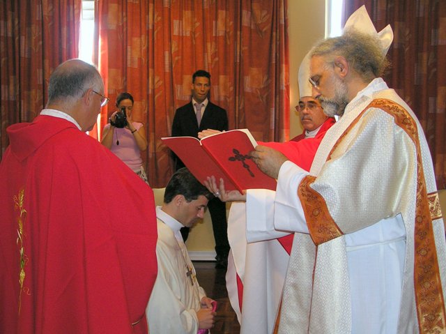 No início da interrogação do Eleito pelo Sagrante Principal, o Sr. Fernão Marques Gomes, então Vigário Primacial da Igreja Católica Ortodoxa Hispânica lê o Mandato Apostólico