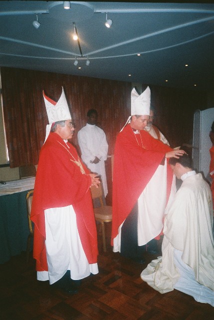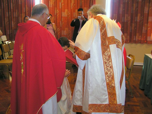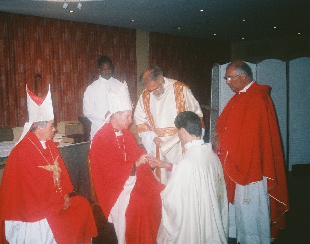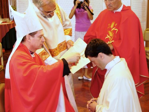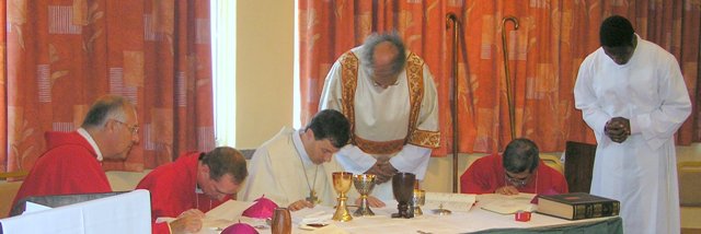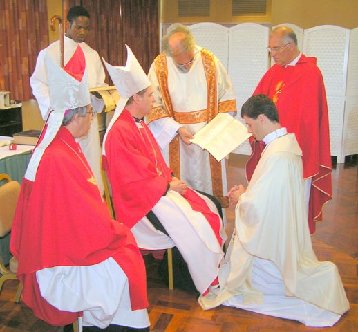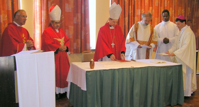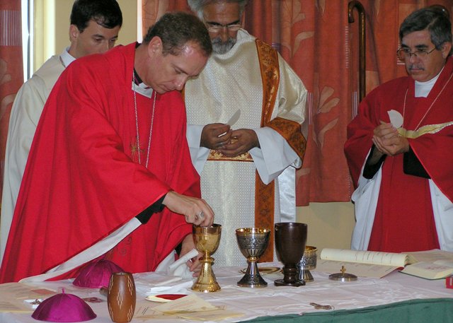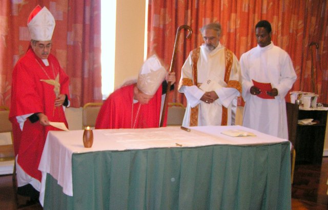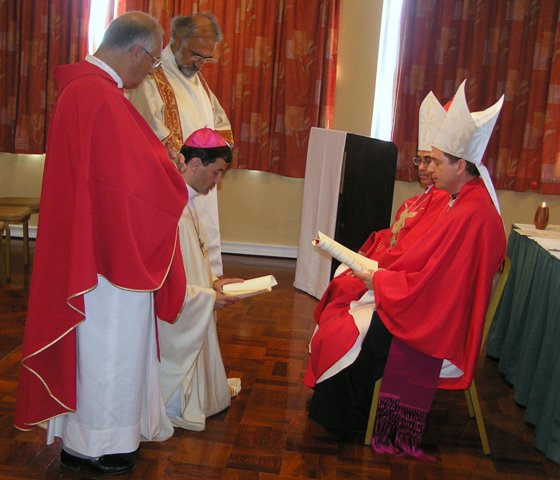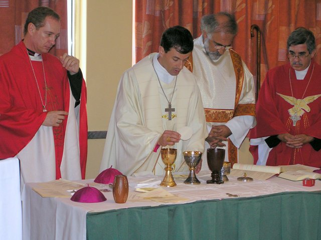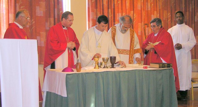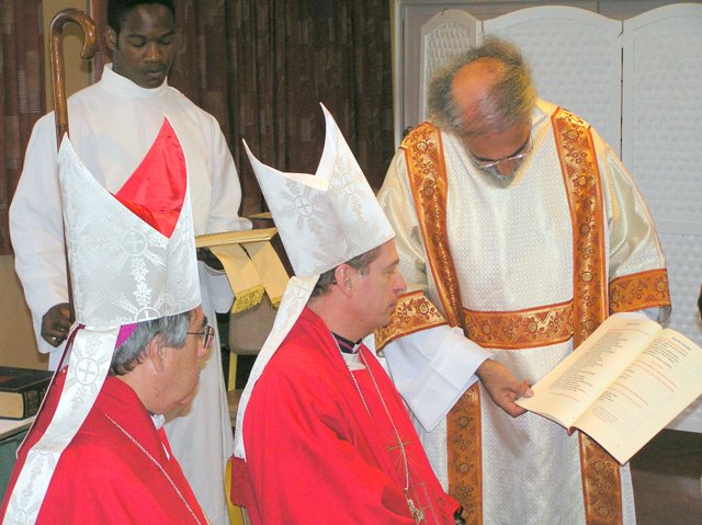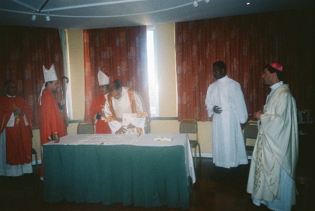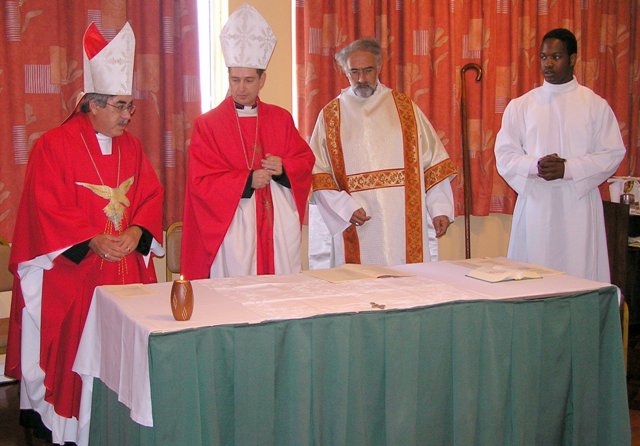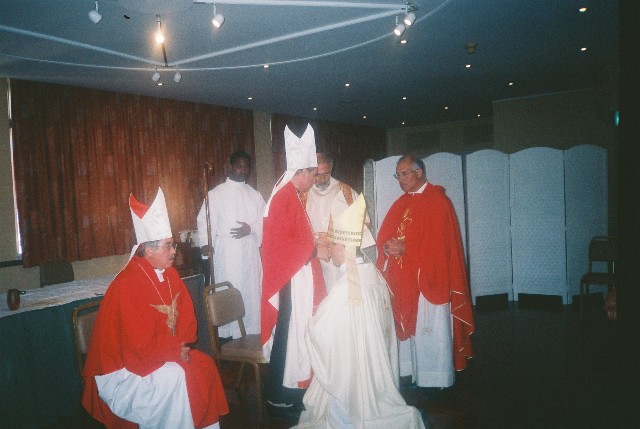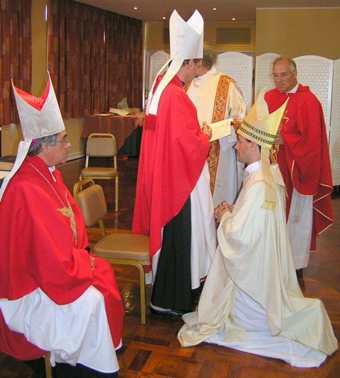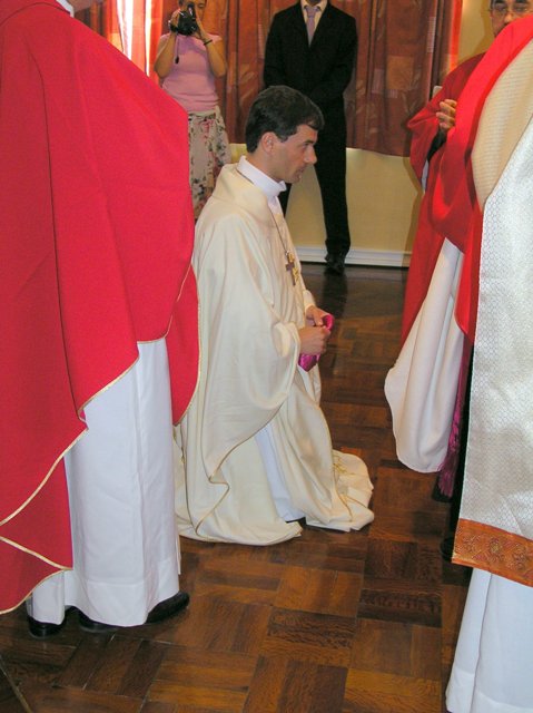 No início da interrogação do Eleito pelo Sagrante Principal, o Sr. Fernão Marques Gomes, então Vigário Primacial da Igreja Católica Ortodoxa Hispânica lê o Mandato Apostólico