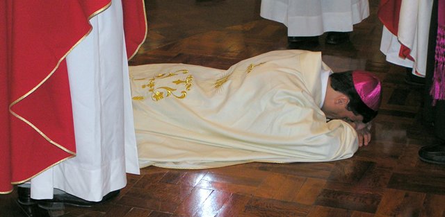 S.B. Dom Paulo Jorge de Laureano prostrado durante a Ladainha dos Santos