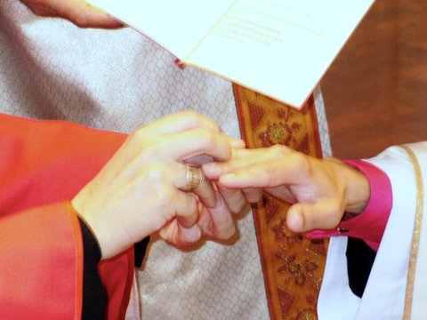 S.B. Dom Paulo recebendo o anel episcopal, simbolo de fidelidade a Cristo e à Igreja