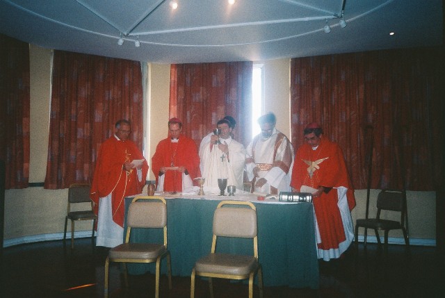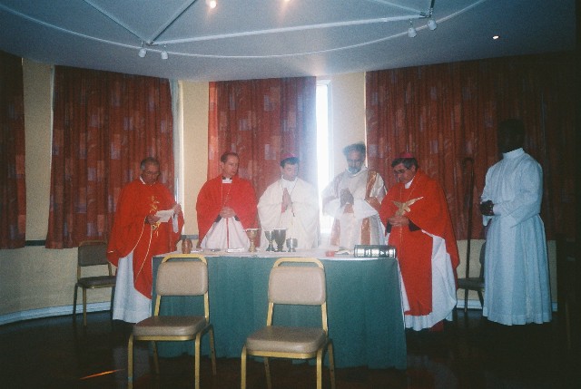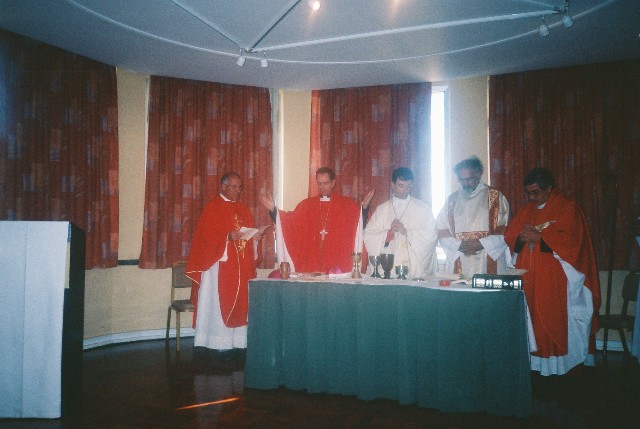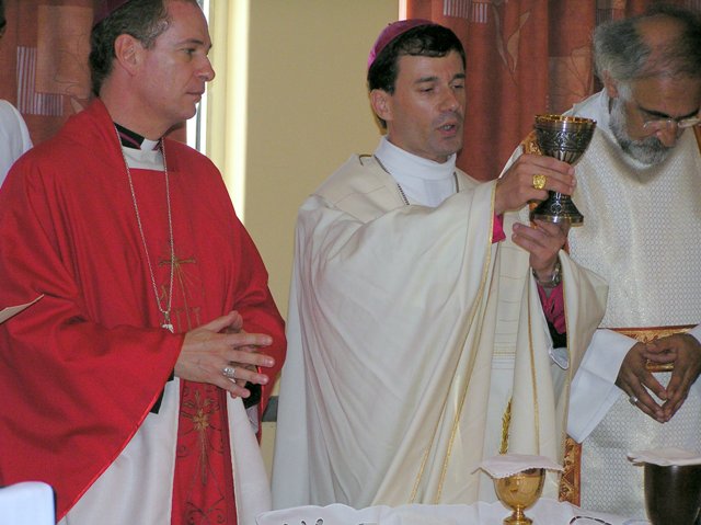 S.B. Dom Paulo Jorge de Laureano assumindo a Presidência da Liturgia Eucarística entre os seus pais e irmãos no Episcopado
