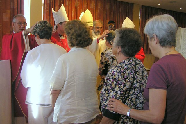 Os Bispos e Sacerdote presentes fazem imposição de mãos e bênção de cura divina aos presentes