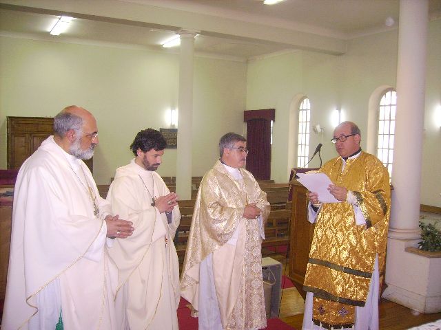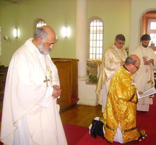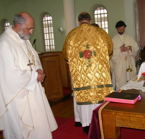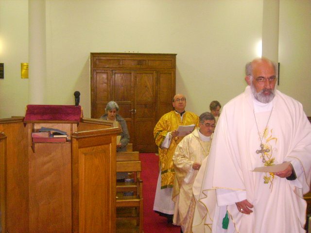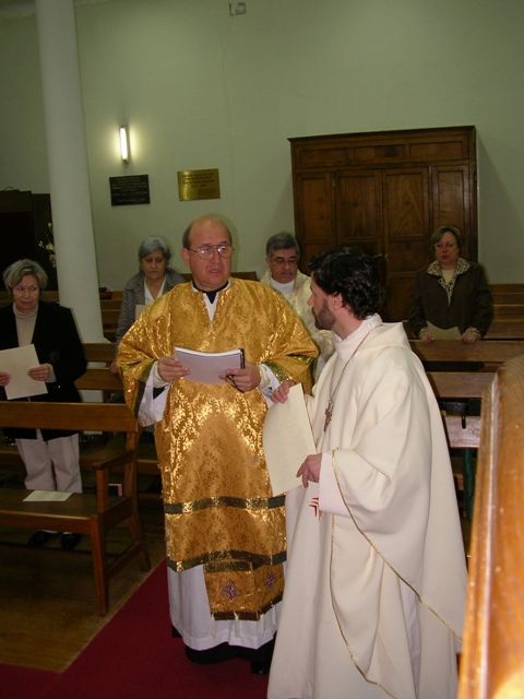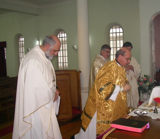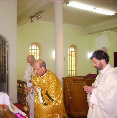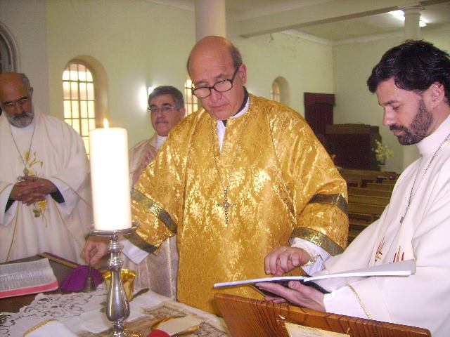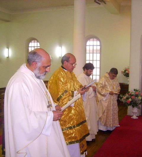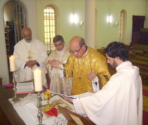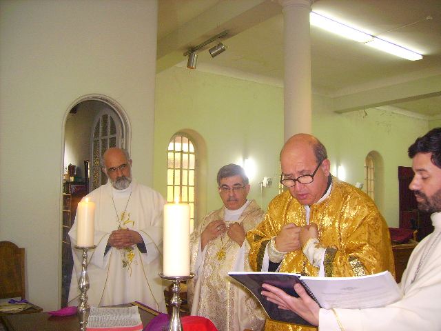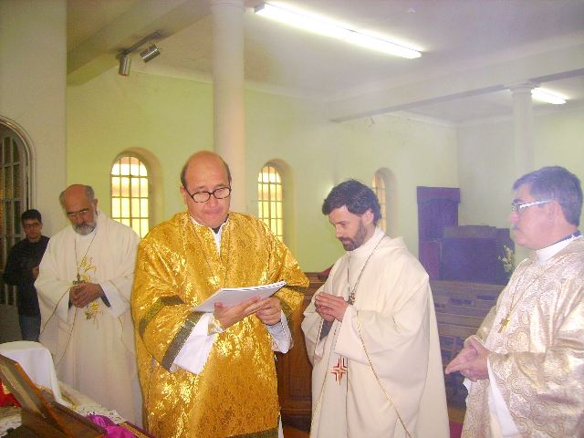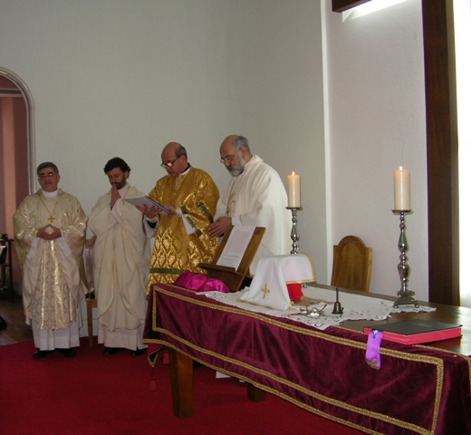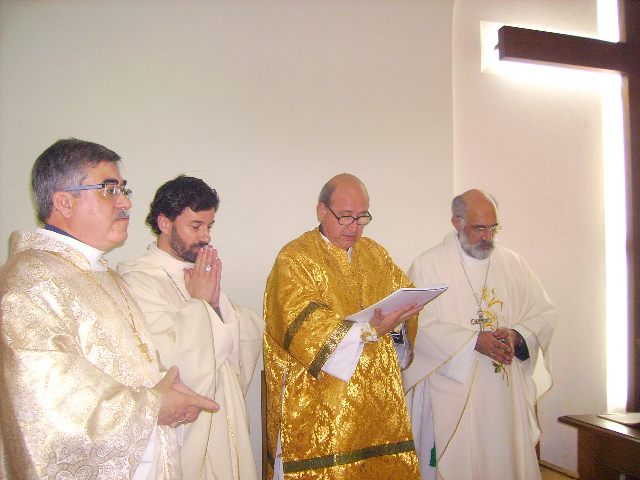 Sr. Fernão Marques Gomes (Deposto e reduzido ao Estado laical em 29 de Junho de 2015), S.E.R. Mons. Alfredo Mingolla-Montrezza, S.B. Dom Paulo Jorge de Laureano e S.E.R. Dom Luís Manuel dos Reis Gonçalves, no inicio da Divina Liturgia