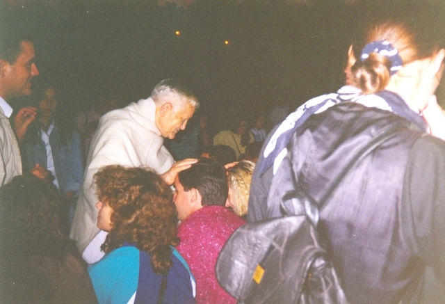 O fundador da Comunidade de Taizé, o São Roger de Taizé, dando a bênção aos jovens peregrinos presentes com a imposição de mãos (foto tirada por S.B. Dom Paulo), momentos antes de receber igualmente a bênção da imposição de mãos do carismático fundador