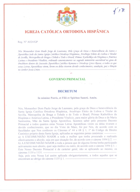 Católica Ortodoxa Hispânica, que de acordo com o Código