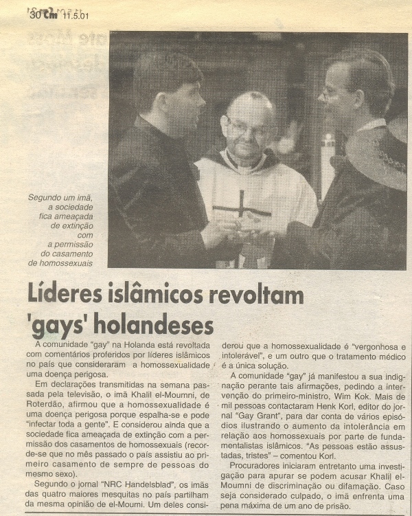 Lideres islâmicos revoltam gays holandeses - 11 de Maio de 2001