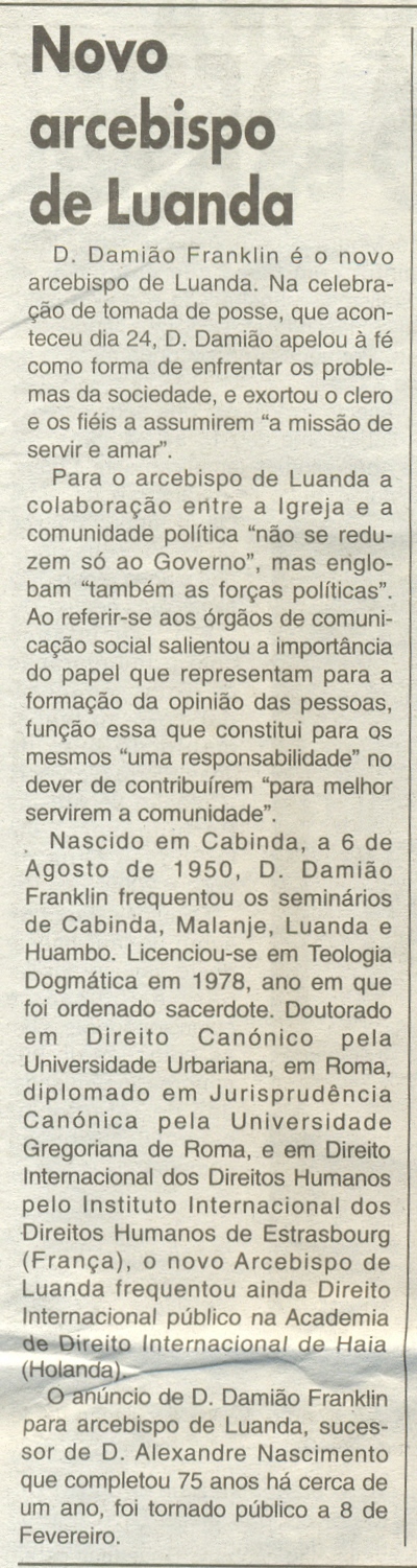 Novo arcebispo de Luanda - 31 de Março de 2001