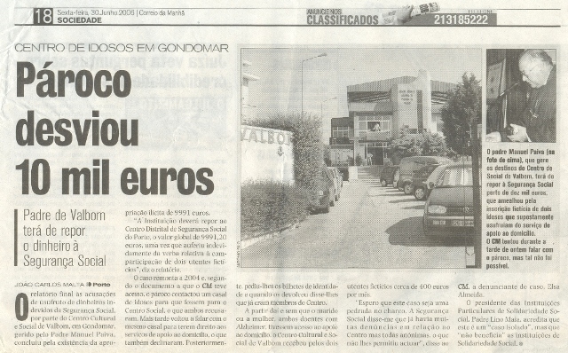 Pároco desviou 100.000 euros - 30 de Junho de 2006